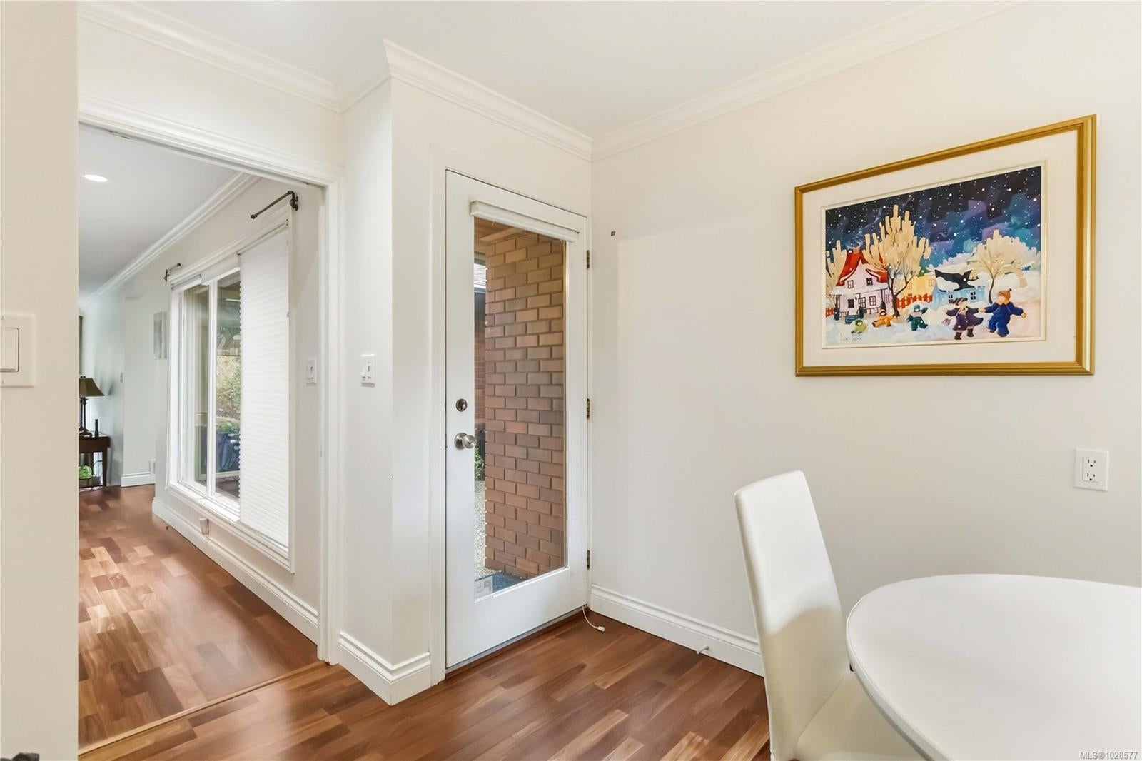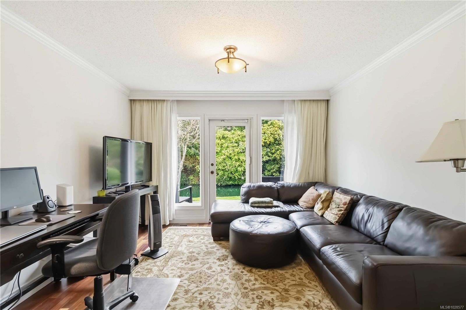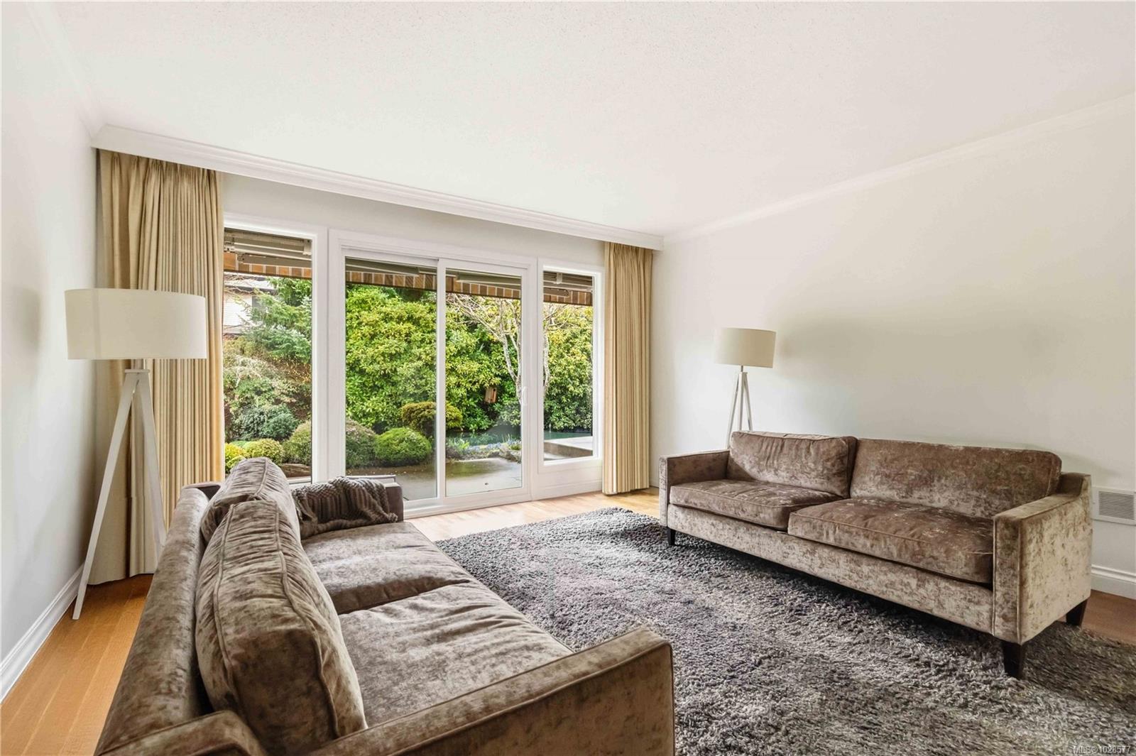 Located within a gated community overlooking the prestigious Uplands Golf Course, this beautifully updated one-level townhouse offers exceptional comfort, privacy, and an outstanding location in sought-after Uplands Estates. This bright end-unit residence, offering approximately 1,828 sq ft of living space, is one of the most desirable ground-level homes in the complex. The thoughtfully designed floor plan provides generous living areas ideal for both everyday living and entertaining. The spacious living room features a striking fireplace and large windows that fill the space with natural light, while the entertainment-sized formal dining room offers plenty of room for hosting family and friends. A versatile den provides the perfect space for a home office, reading room, or additional sitting area. The generous primary bedroom includes a deluxe ensuite bathroom and ample closet space, creating a comfortable private retreat. A second bedroom offers flexibility for guests or additional family members. One of the home’s standout features is the three glass doorways leading to a private south-facing patio, creating seamless indoor-outdoor living. From here you can enjoy peaceful views overlooking the tranquil waterway with glimpses of the beautifully maintained Uplands Golf Course, making it an ideal setting for morning coffee or evening relaxation. Additional highlights include end-unit windows that provide excellent natural light, skylights that brighten the interior spaces, and a double garage offering both convenience and extra storage. Set within a quiet and beautifully maintained gated community, this home offers a rare opportunity to enjoy spacious single-level living in one of Victoria’s most desirable neighbourhoods. Close to beaches, parks, shopping, and the many amenities of Oak Bay, this is a wonderful opportunity to experience the best of West Coast living.