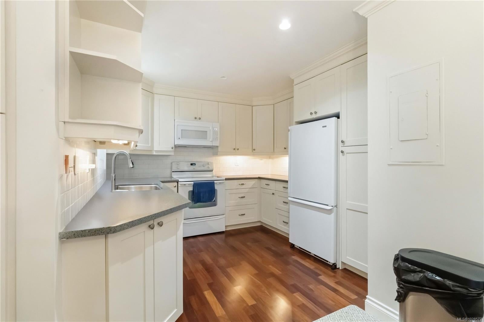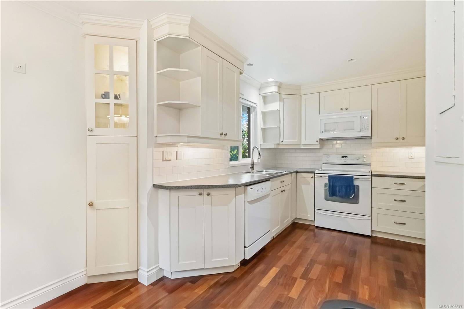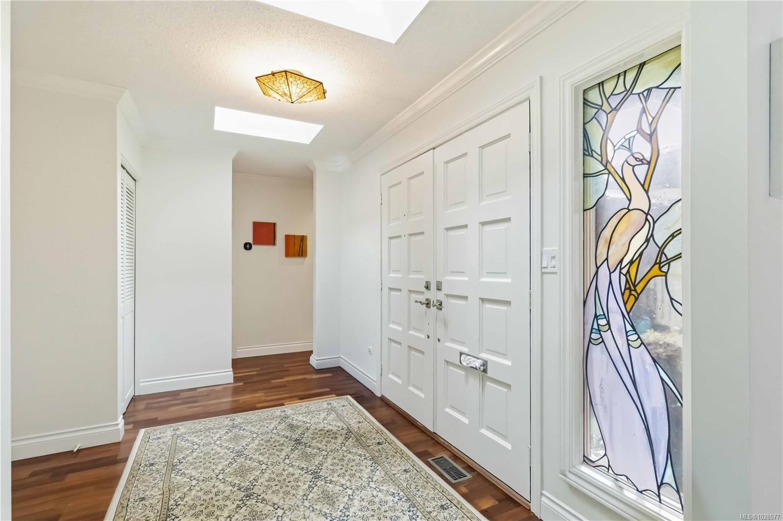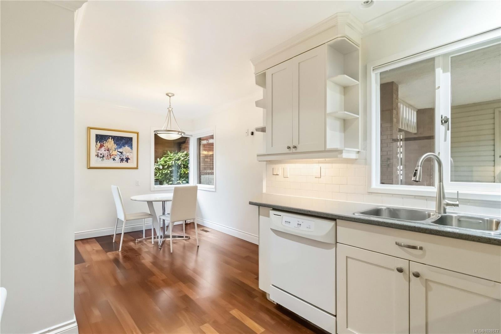 Located within a gated community overlooking the prestigious Uplands Golf Course, this beautifully updated one-level townhouse offers exceptional comfort, privacy, and an outstanding location in sought-after Uplands Estates. This bright end-unit residence, offering approximately 1,828 sq ft of living space, is one of the most desirable ground-level homes in the complex. The thoughtfully designed floor plan provides generous living areas ideal for both everyday living and entertaining. The spacious living room features a striking fireplace and large windows that fill the space with natural light, while the entertainment-sized formal dining room offers plenty of room for hosting family and friends. A versatile den provides the perfect space for a home office, reading room, or additional sitting area. The generous primary bedroom includes a deluxe ensuite bathroom and ample closet space, creating a comfortable private retreat. A second bedroom offers flexibility for guests or additional family members. One of the home’s standout features is the three glass doorways leading to a private south-facing patio, creating seamless indoor-outdoor living. From here you can enjoy peaceful views overlooking the tranquil waterway with glimpses of the beautifully maintained Uplands Golf Course, making it an ideal setting for morning coffee or evening relaxation. Additional highlights include end-unit windows that provide excellent natural light, skylights that brighten the interior spaces, and a double garage offering both convenience and extra storage. Set within a quiet and beautifully maintained gated community, this home offers a rare opportunity to enjoy spacious single-level living in one of Victoria’s most desirable neighbourhoods. Close to beaches, parks, shopping, and the many amenities of Oak Bay, this is a wonderful opportunity to experience the best of West Coast living.