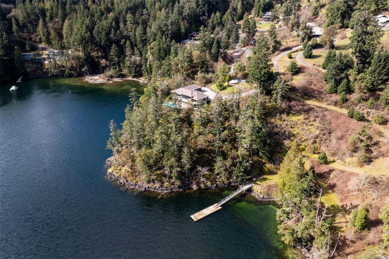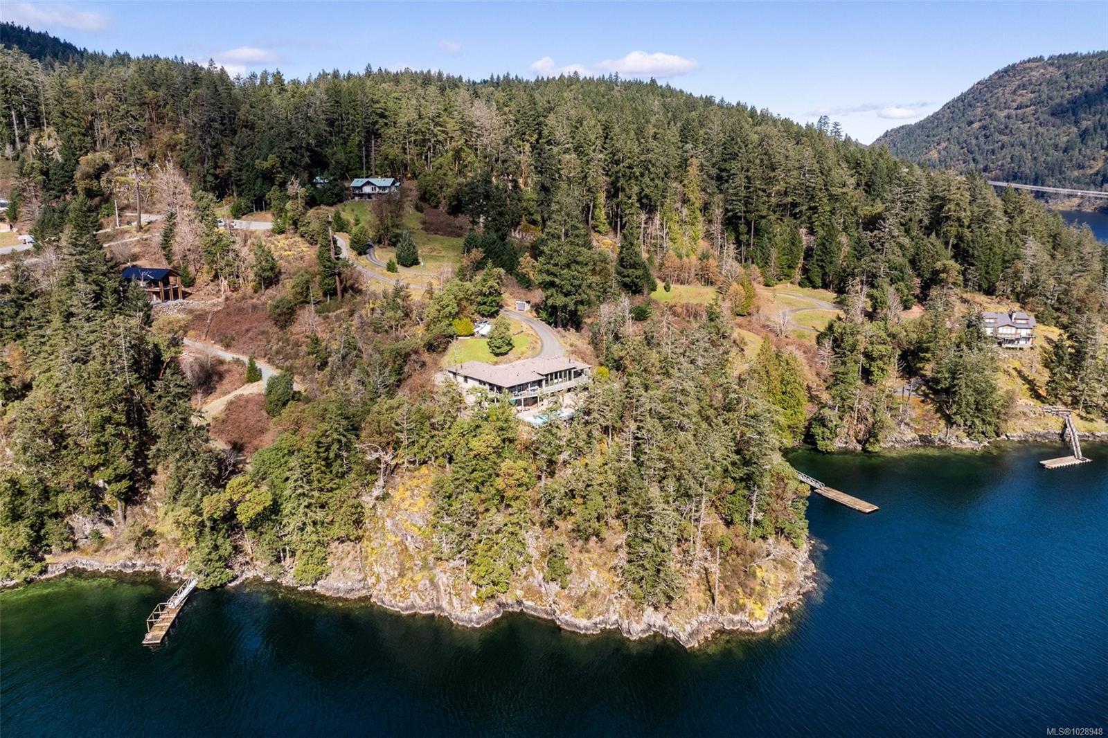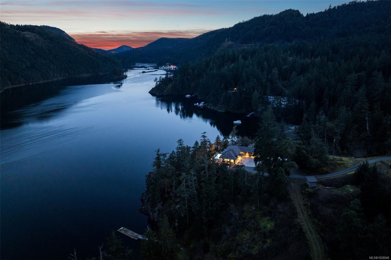 A rare waterfront offering set on over 5 acres with a private dock, valuable foreshore lease, and deep-water moorage, this private gated estate provides direct access to the calm, protected waters of Finlayson Arm for year-round boating, fishing, kayaking, and coastal exploration. Perfectly positioned above the inlet, the home captures breathtaking ocean, mountain, and rugged West Coast views from one of the most extraordinary vantage points on Vancouver Island. Thoughtfully designed to harmonize with its natural surroundings, this custom-built contemporary residence blends modern luxury with the tranquility of coastal living. Expansive windows and natural materials create an inviting and luminous interior, where the beauty of the outdoors becomes part of everyday living. With over 4,500 sq. ft. of beautifully finished living space, the home features five bedrooms and five bathrooms, along with generous living and entertaining areas that flow seamlessly from one space to the next. Every detail has been considered to offer both comfort and elegance, whether enjoying quiet moments or hosting family and friends. The outdoors are equally impressive. A pool, hot tub, and outdoor shower provide a private resort-like experience, while the expansive grounds offer unparalleled privacy and connection to nature. From the dock, residents can enjoy direct water access for boating, kayaking, or fishing, while taking in the dramatic coastal scenery and abundant wildlife. This waterfront sanctuary combines privacy, luxury, and natural beauty in a setting that is both exclusive and serene. With over five acres of land, a thoughtfully designed home, and rare waterfront amenities, it offers an exceptional West Coast lifestyle, just minutes from nearby communities while feeling a world apart. An unparalleled opportunity to own one of Vancouver Island’s most extraordinary coastal estates.