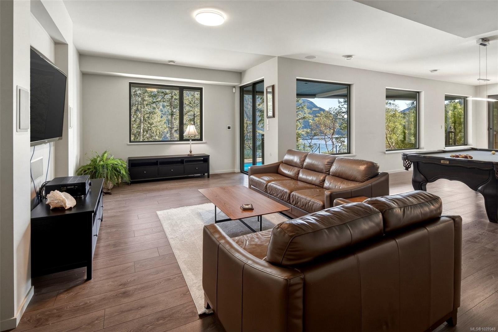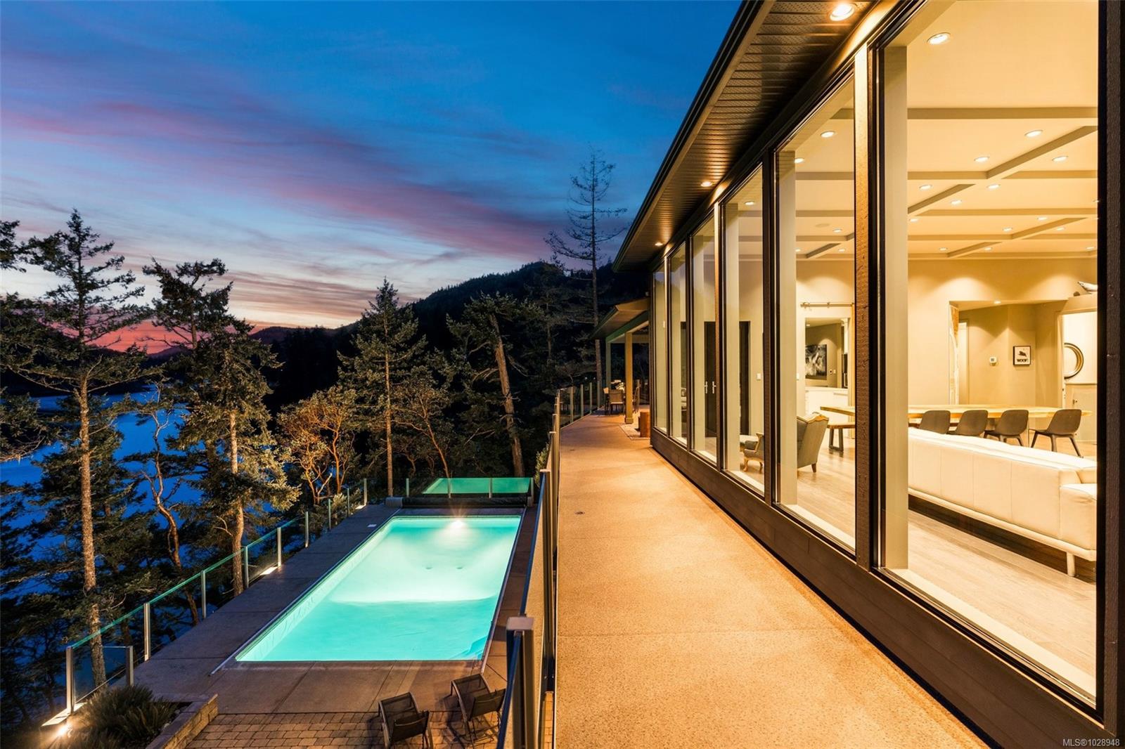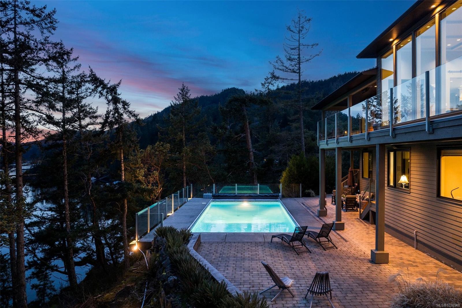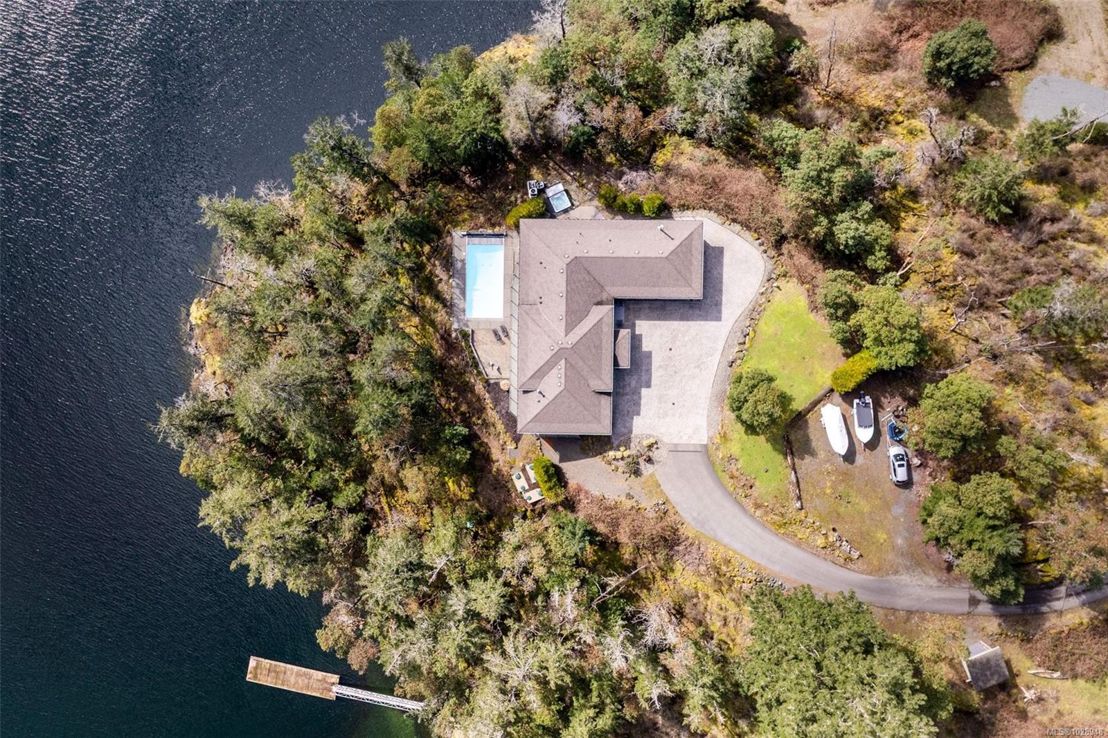 A rare waterfront offering set on over 5 acres with a private dock, valuable foreshore lease, and deep-water moorage, this private gated estate provides direct access to the calm, protected waters of Finlayson Arm for year-round boating, fishing, kayaking, and coastal exploration. Perfectly positioned above the inlet, the home captures breathtaking ocean, mountain, and rugged West Coast views from one of the most extraordinary vantage points on Vancouver Island. Thoughtfully designed to harmonize with its natural surroundings, this custom-built contemporary residence blends modern luxury with the tranquility of coastal living. Expansive windows and natural materials create an inviting and luminous interior, where the beauty of the outdoors becomes part of everyday living. With over 4,500 sq. ft. of beautifully finished living space, the home features five bedrooms and five bathrooms, along with generous living and entertaining areas that flow seamlessly from one space to the next. Every detail has been considered to offer both comfort and elegance, whether enjoying quiet moments or hosting family and friends. The outdoors are equally impressive. A pool, hot tub, and outdoor shower provide a private resort-like experience, while the expansive grounds offer unparalleled privacy and connection to nature. From the dock, residents can enjoy direct water access for boating, kayaking, or fishing, while taking in the dramatic coastal scenery and abundant wildlife. This waterfront sanctuary combines privacy, luxury, and natural beauty in a setting that is both exclusive and serene. With over five acres of land, a thoughtfully designed home, and rare waterfront amenities, it offers an exceptional West Coast lifestyle, just minutes from nearby communities while feeling a world apart. An unparalleled opportunity to own one of Vancouver Island’s most extraordinary coastal estates.